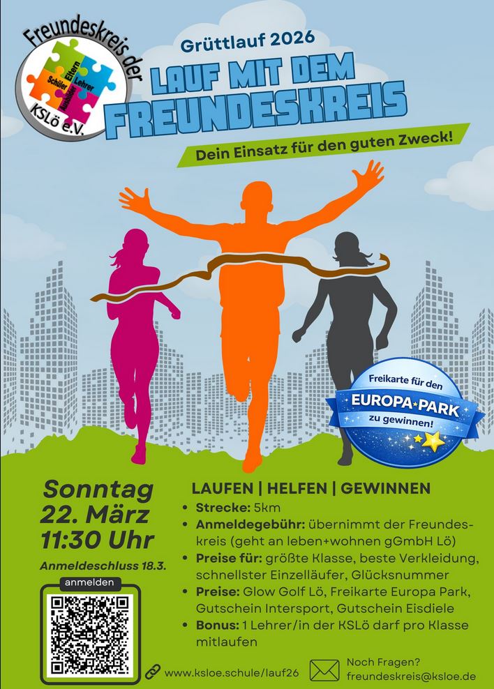 22. März 2026: Grüttlauf 2026: Laufen – Helfen – Gewinnen mit dem Freundeskreis der KSLö