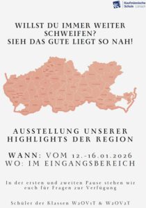 Frei nach dem Motto Johann Wolfgang von Goethes („Willst du immer weiter schweifen? Sieh das Gute liegt so nah.“ ) gestalteten die W2OV-Klassen im Rahmen ihres Projektunterrichts zu Beginn des Jahres 2026 eine Ausstellung im Eingangsbereich der KSLö.